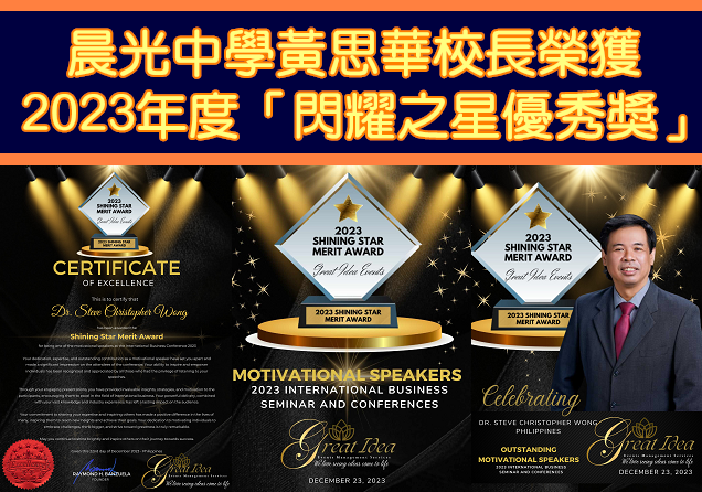 ” Both awarding organizations are recognizing school administrators and educators who have made significant contributions to the field of education for the first time. The individuals who have received these awards are all elite figures in the global education community. Dr. Wong’s achievement not only brings honor to our school but also to the Filipino-Chinese community. The organizing bodies have acknowledged Dr. Wong’s immense dedication to the field of education. In addition to managing the school meticulously, and ensuring its continued growth, Dr. Wong has also delivered lectures multiple times, sharing professional knowledge with teachers worldwide. Therefore, this award is truly well-deserved and a cause for celebration.